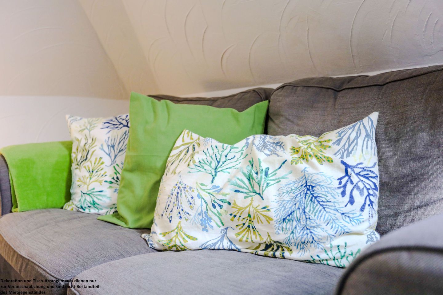 Das „Seesternchen“ verbindet moderne Ausstattung mit einer behaglichen, fast heimeligen Atmosphäre. Der Wohnbereich lädt zum Ankommen und Durchatmen ein: Ein bequemes Sofa bietet ausreichend Platz für entspannte Abende vor dem Fernseher oder ruhige Stunden nach einem Tag am Meer.