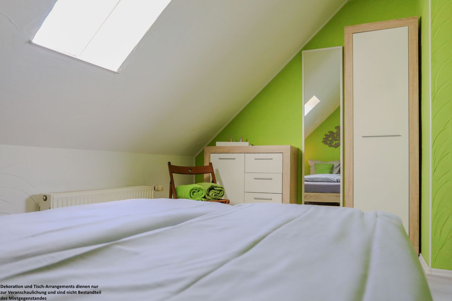 Ein besonderes Highlight ist das große Dachfenster, das den Raum mit natürlichem Licht durchflutet und eine freundliche, offene Atmosphäre schafft. In einer gemütlichen Nische befindet sich das komfortable Doppelbett (160 x 200 cm mit durchgehender Matratze) – ein geschützter, ruhiger Ort zum Träumen und Erholen. Die charmanten Dachschrägen verleihen dem Raum zusätzliche Geborgenheit und machen ihn zu einem echten Wohlfühlplatz.