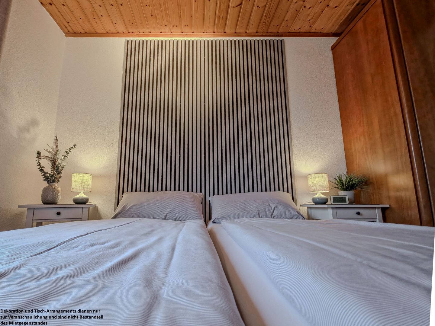 Das zweite Schlafzimmer bietet zwei komfortable Einzelbetten, die sowohl für Kinder als auch für Erwachsene geeignet sind.