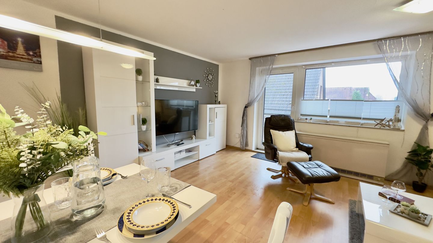 Die Ferienwohnung Friesenstube bietet auf 52m² Platz für bis zu 4 Personen und liegt im ersten Stock eines Mehrfamilienhauses in einer ruhigen Wohnsiedlung in Horumersiel.
