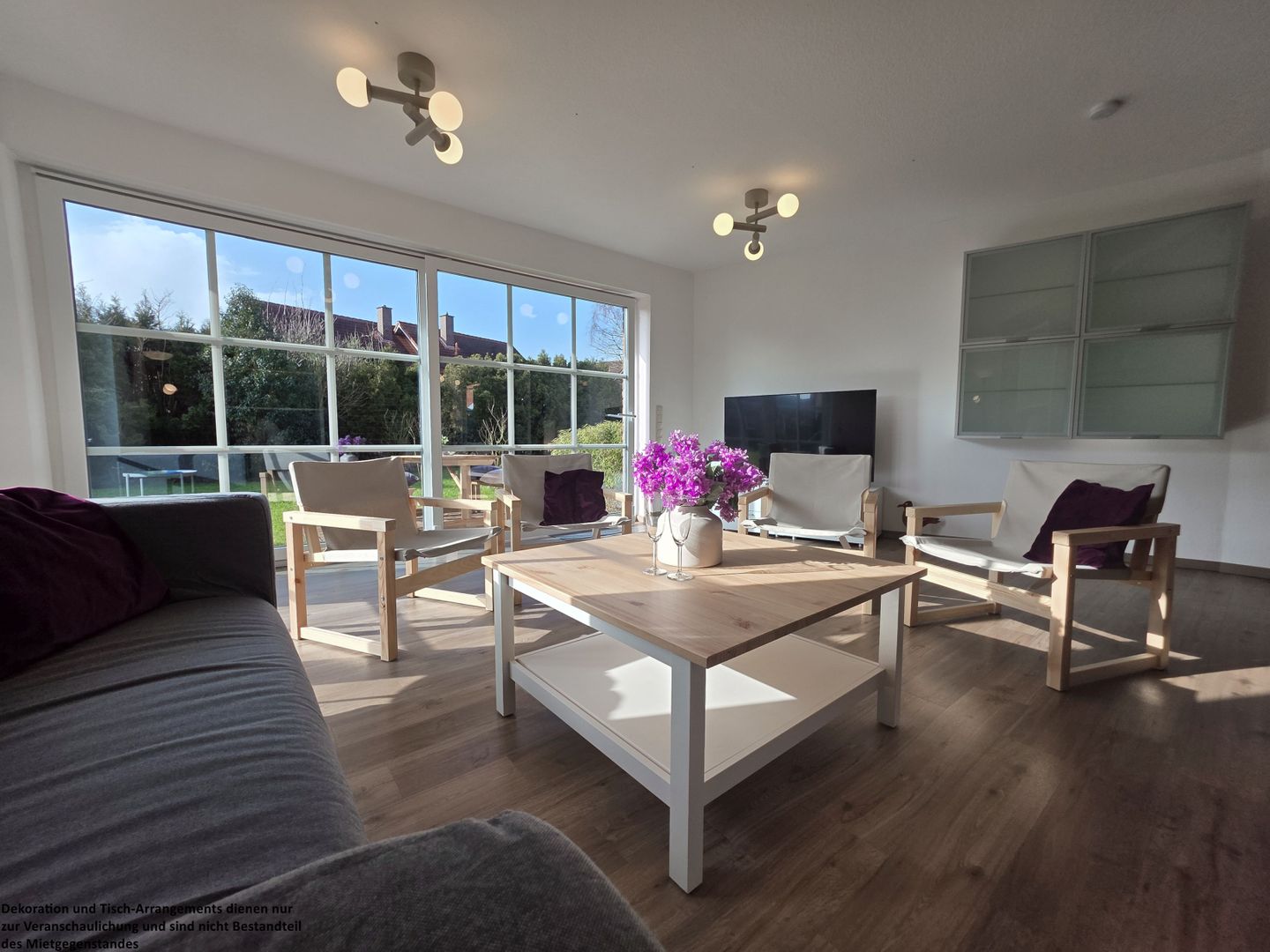 Das Wohnzimmer lädt mit gemütlichem Ecksofa, Sofa und bequemen Sesseln zu entspannten Abenden ein – ob bei einem guten Buch, einem Film oder einfach beim Blick in den Garten. Der angrenzende Essbereich bietet reichlich Platz für gemeinsame Mahlzeiten oder Spieleabende.