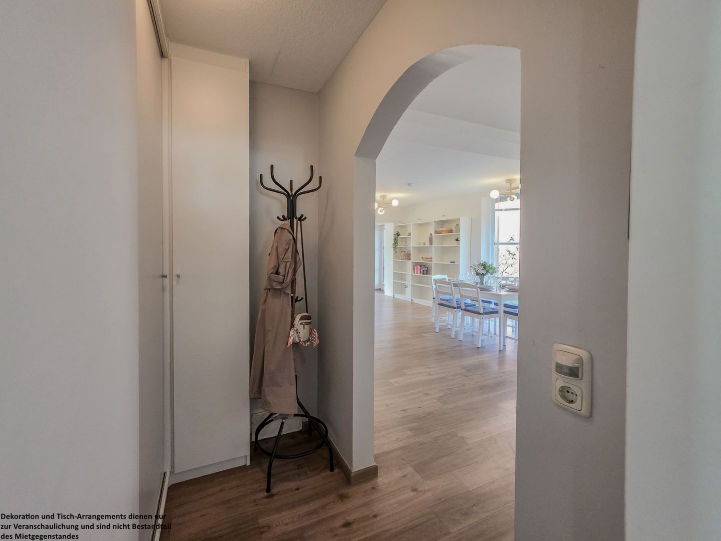 Schon beim Betreten spüren Sie die Ruhe: Ein langer, mit Vinyl ausgelegter Flur empfängt Sie und bietet mit Garderobe und Schuhschrank ausreichend Platz für Ihre persönlichen Utensilien. Von hier aus gelangen Sie direkt in das Herzstück des Hauses – ein lichtdurchfluteter, offener Raum, der Wohnzimmer, Essbereich, Küche und kleinen Loungebereich harmonisch verbindet. Große Fensterfronten lassen die Sonne schon am frühen Morgen herein und schenken einen herrlichen Blick auf Garten und Terrasse.