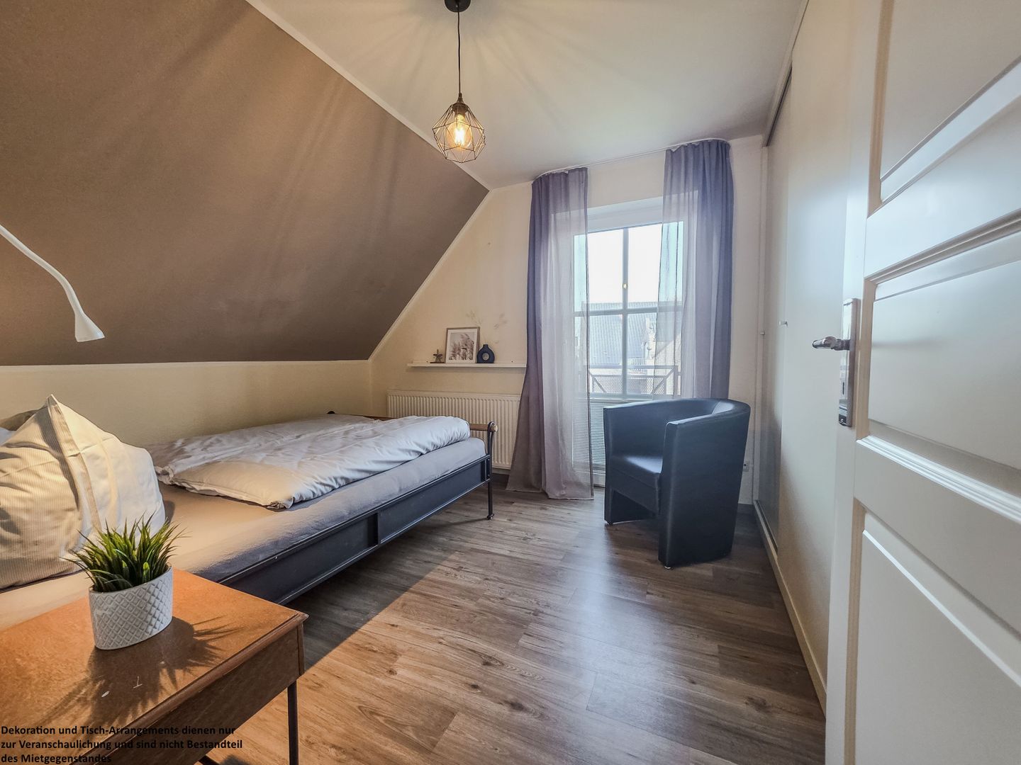 Im zweiten Schlafzimmer finden Sie ein Bett (170×200 cm) sowie einen Kleiderschrank, ideal für Paare.