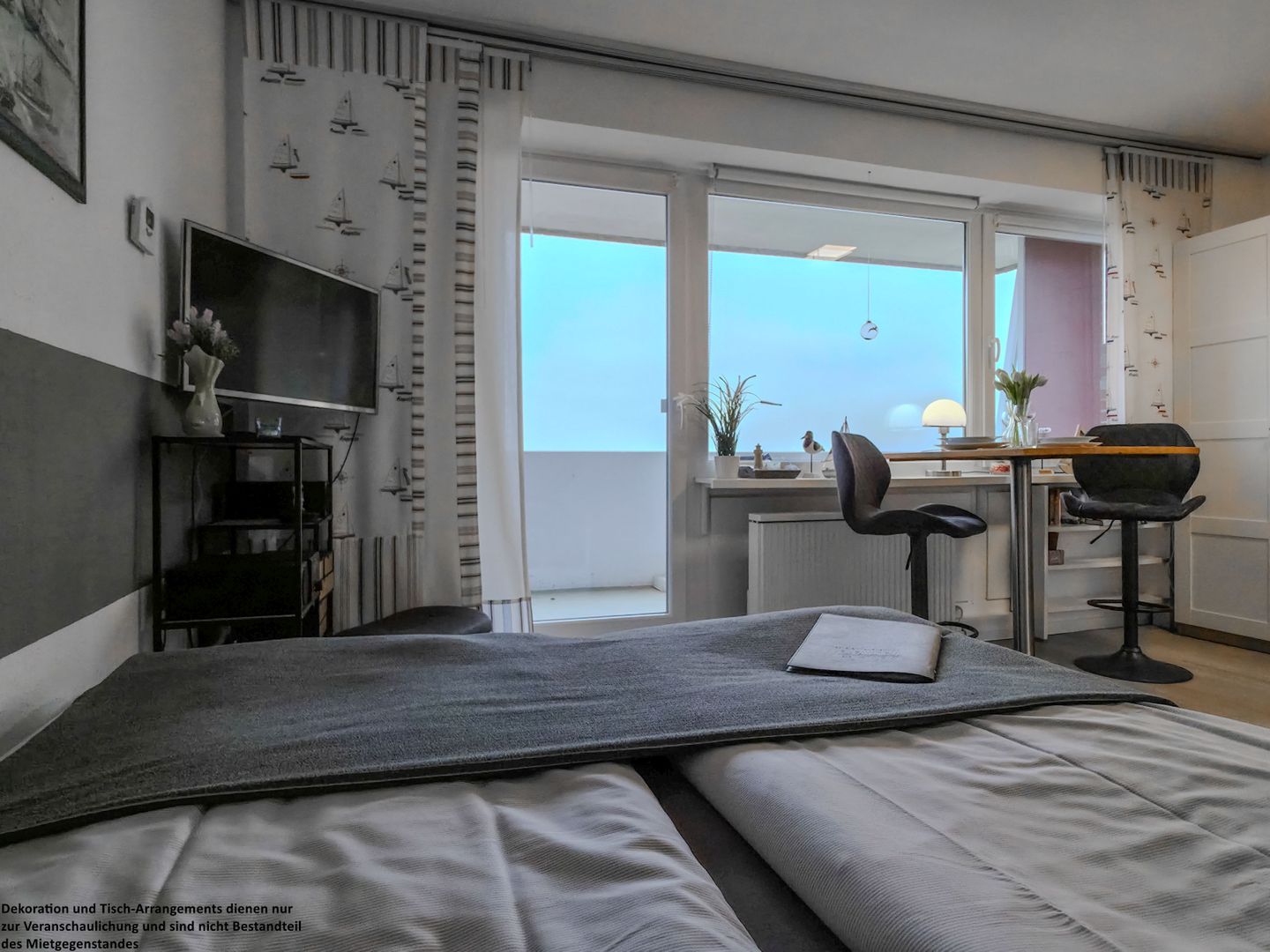 Willkommen in der liebevoll eingerichteten 30qm-Ferienwohnung „Inselblick“, hoch oben in der 6. Etage eines Hochhauses. Diese kleine, aber feine Wohlfühloase für zwei Personen beeindruckt mit besonderen Extras und einer traumhaften Atmosphäre.