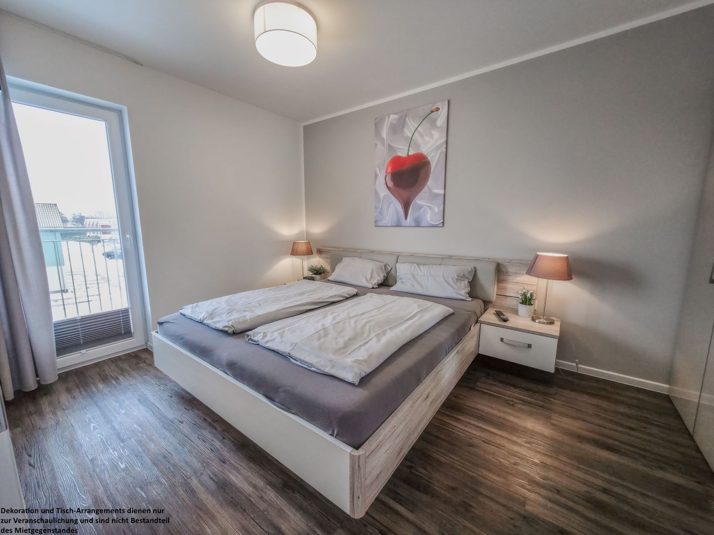 Im Schlafzimmer sorgt das komfortable Doppelbett für erholsamen Schlaf, und auch hier können Sie abends noch gemütlich fernsehen. Der geräumige Kleiderschrank hält ausreichend Platz für Ihre Kleidung bereit.