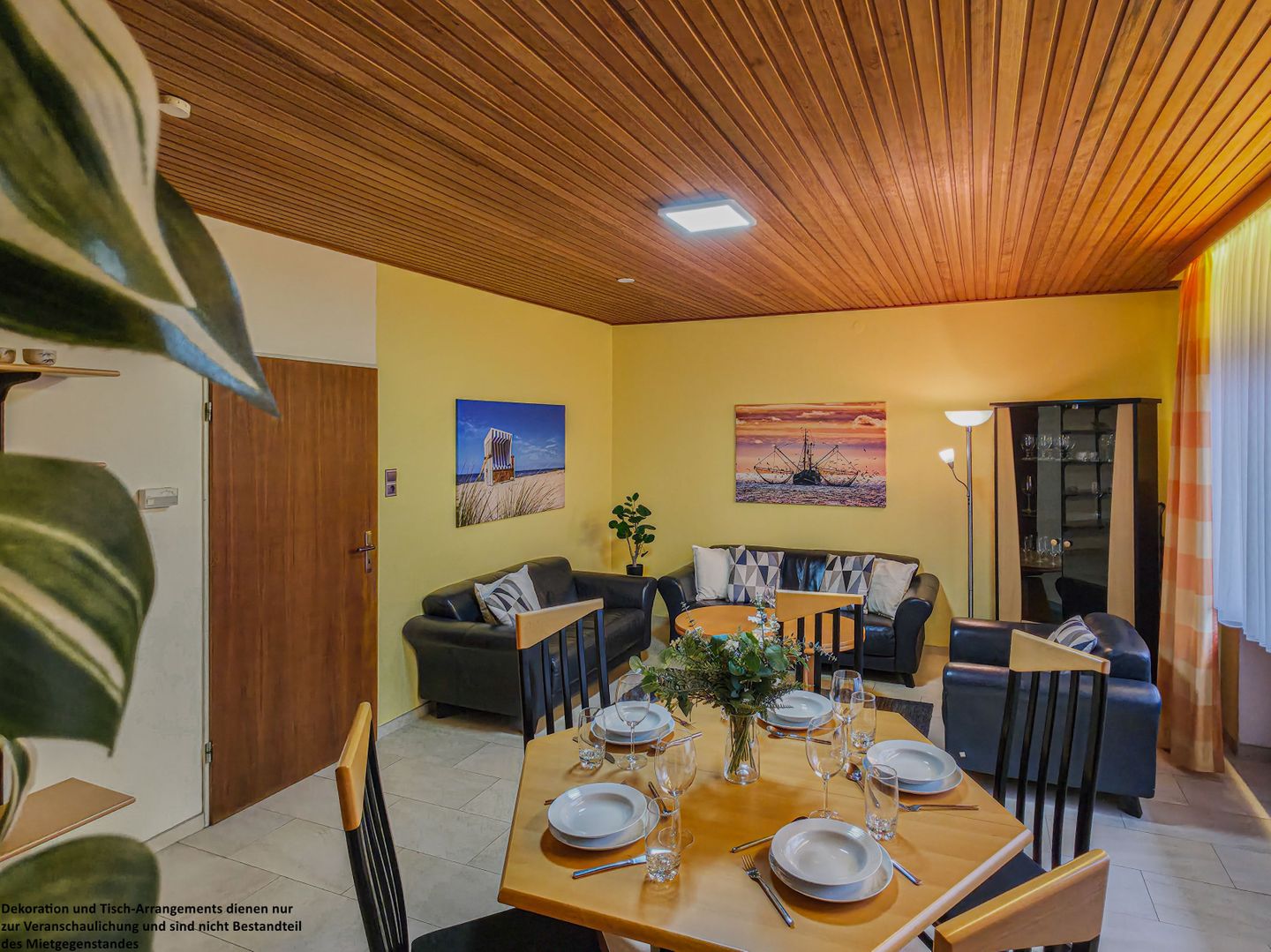 Vom Flur aus gelangen Sie in das gemütliche Wohnzimmer, das mit einer eleganten schwarzen Ledergarnitur und zwei Sesseln zum Verweilen einlädt. Ob ein gutes Buch, ein entspannter Fernsehabend oder einfach nur Zeit miteinander – hier fühlt man sich sofort wohl. Die integrierte Essgruppe bietet ausreichend Platz für gemeinsame Mahlzeiten, Spieleabende oder lange Gespräche bei einem Glas Wein.