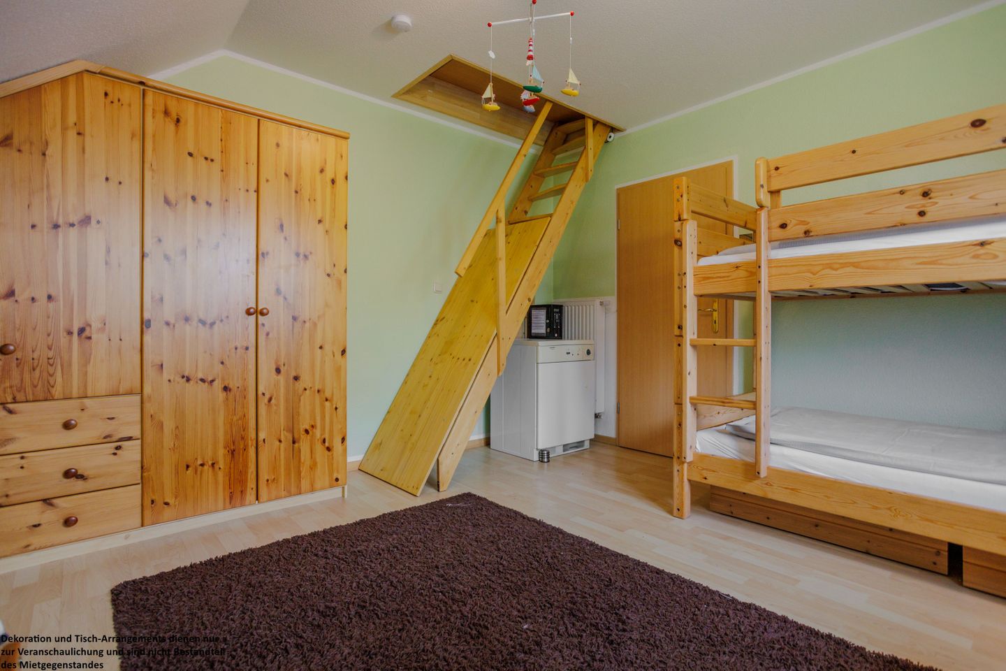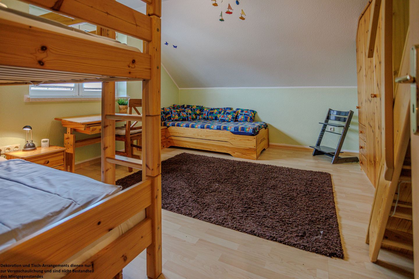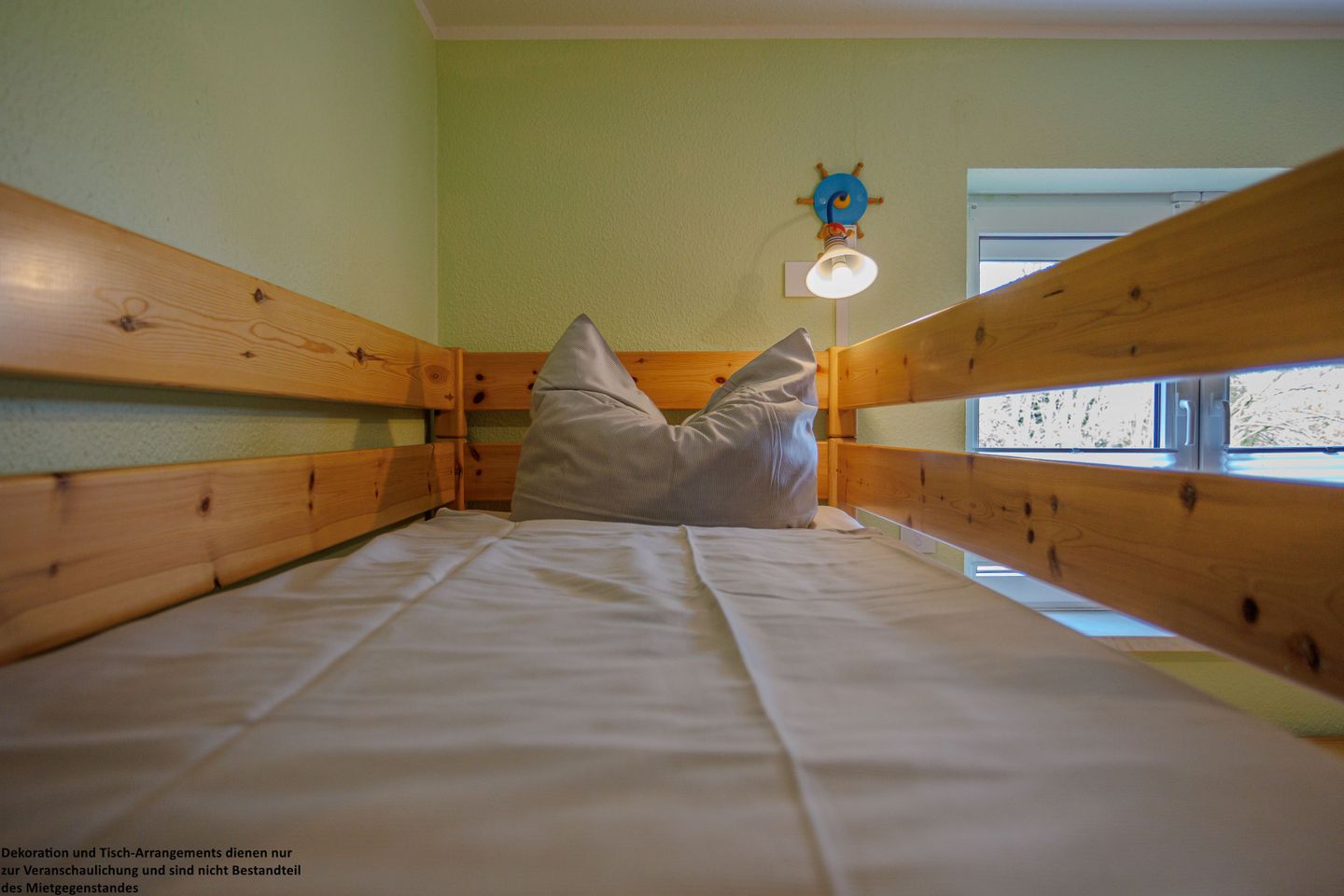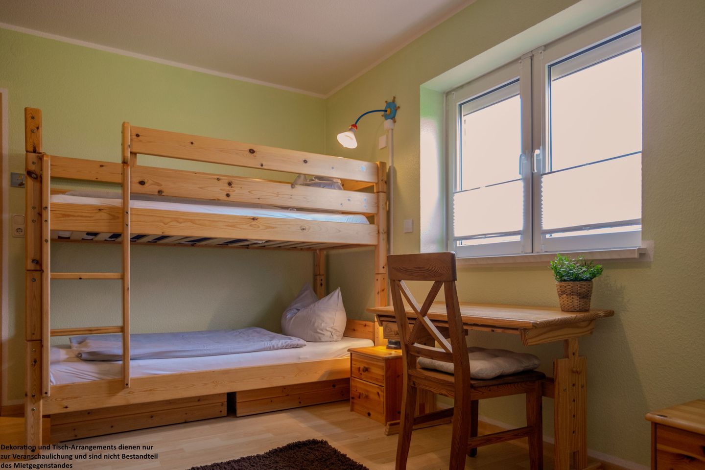 Im zweiten Schlafzimmer erwartet Sie ein Etagenbett, ein Schreibtisch für Urlaubspost und ein kleines Schlafsofa zum Entspannen.