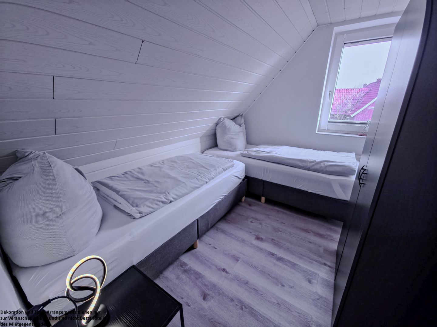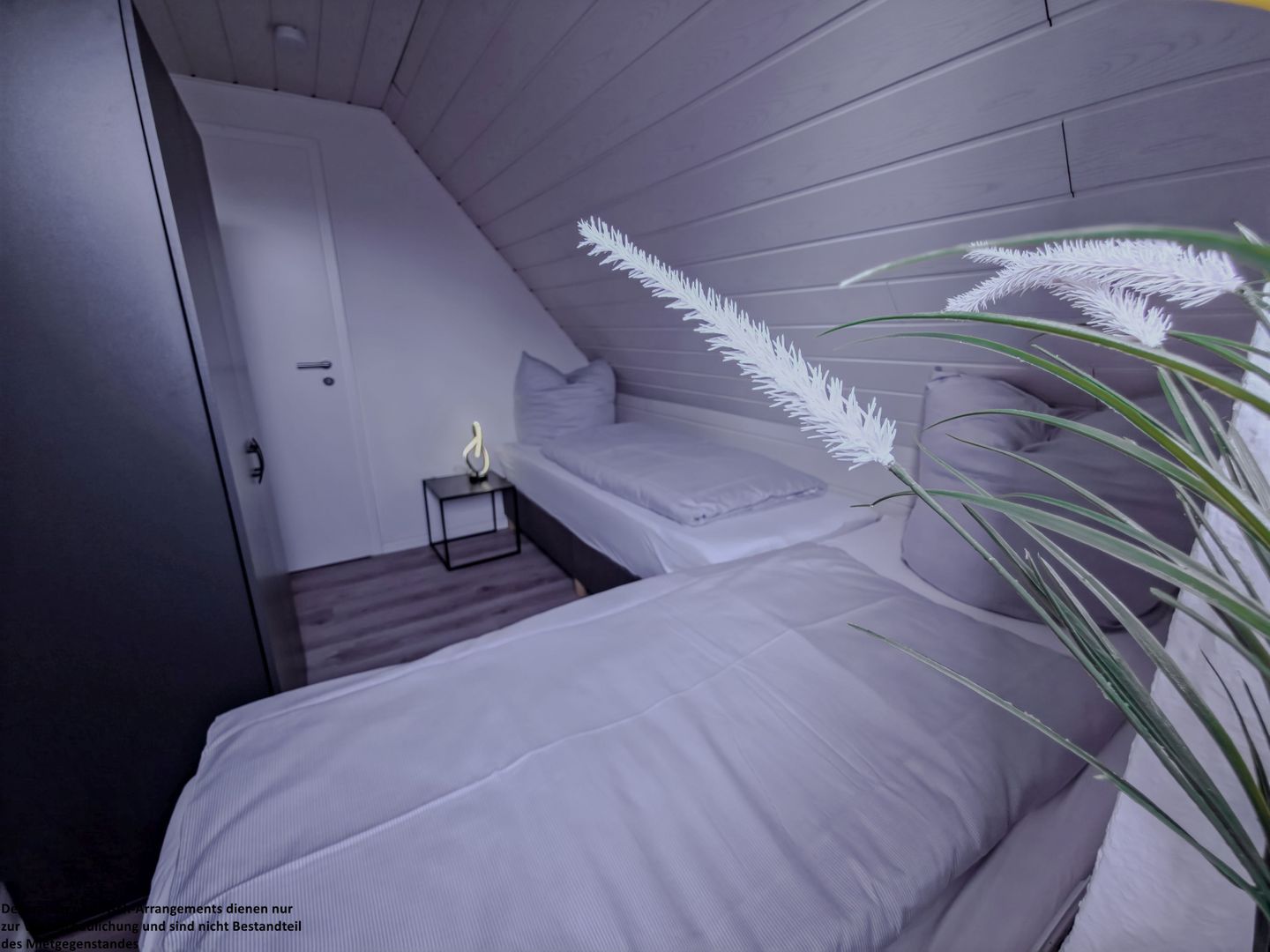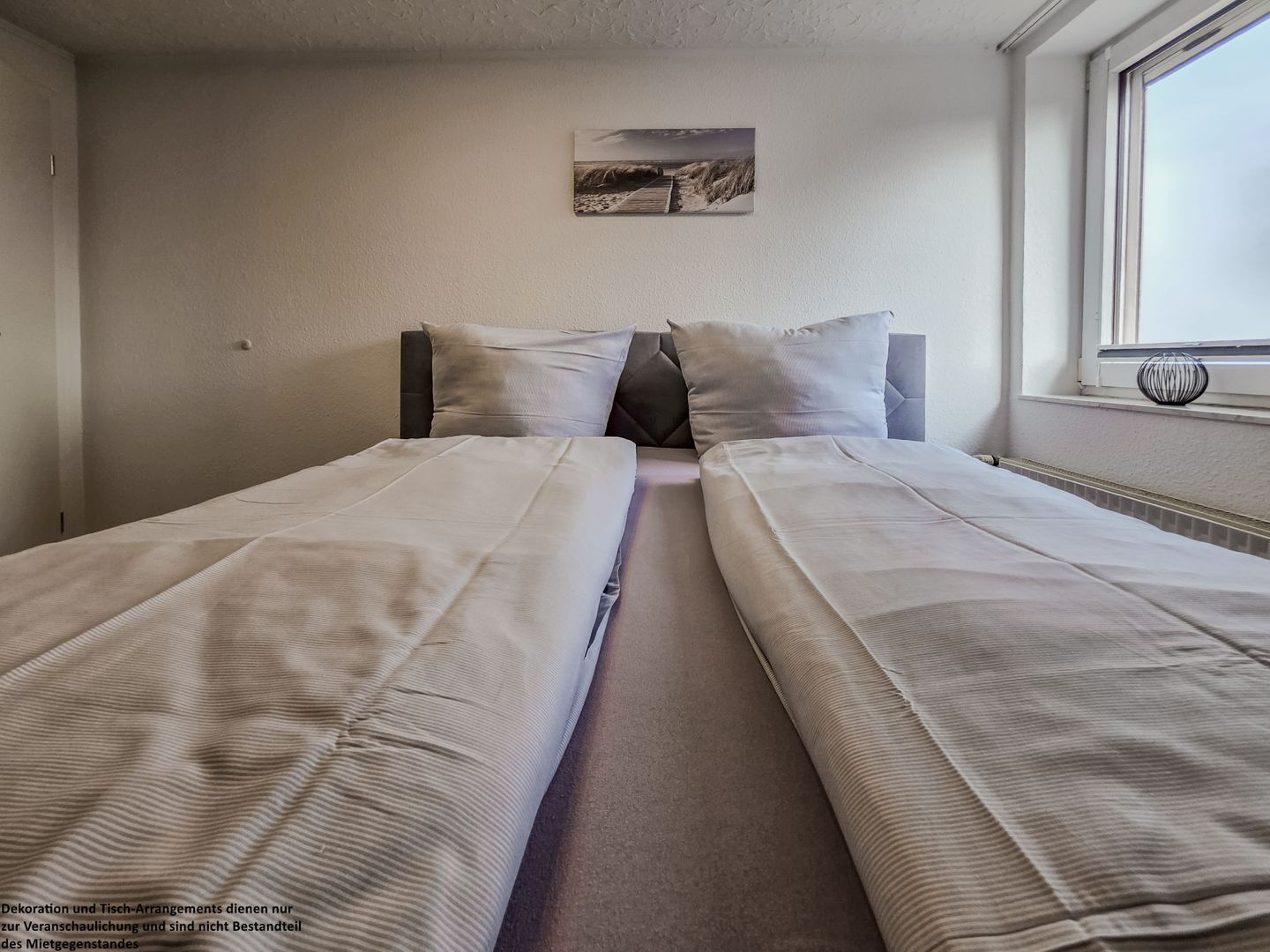 Im ersten Schlafzimmer erwartet Sie ein komfortables Boxspringbett (180 × 200 cm), im zweiten Schlafzimmer stehen zwei Einzel-Boxspringbetten (je 90 × 200 cm) bereit. Beide Zimmer sind mit Kleiderschränken ausgestattet und bieten dank Plissees angenehme Privatsphäre.