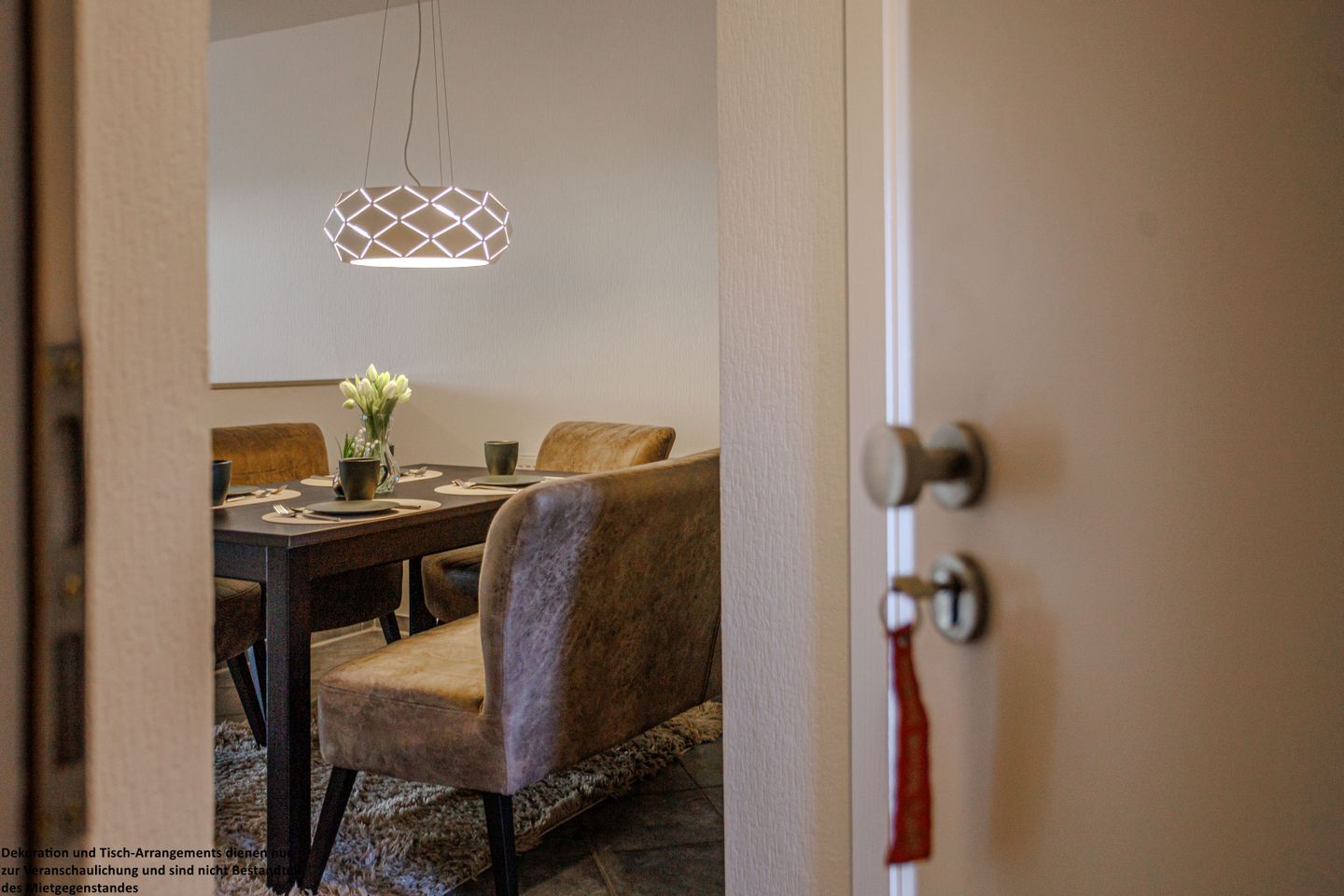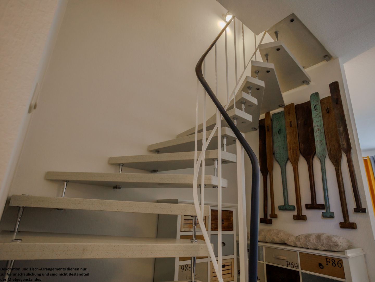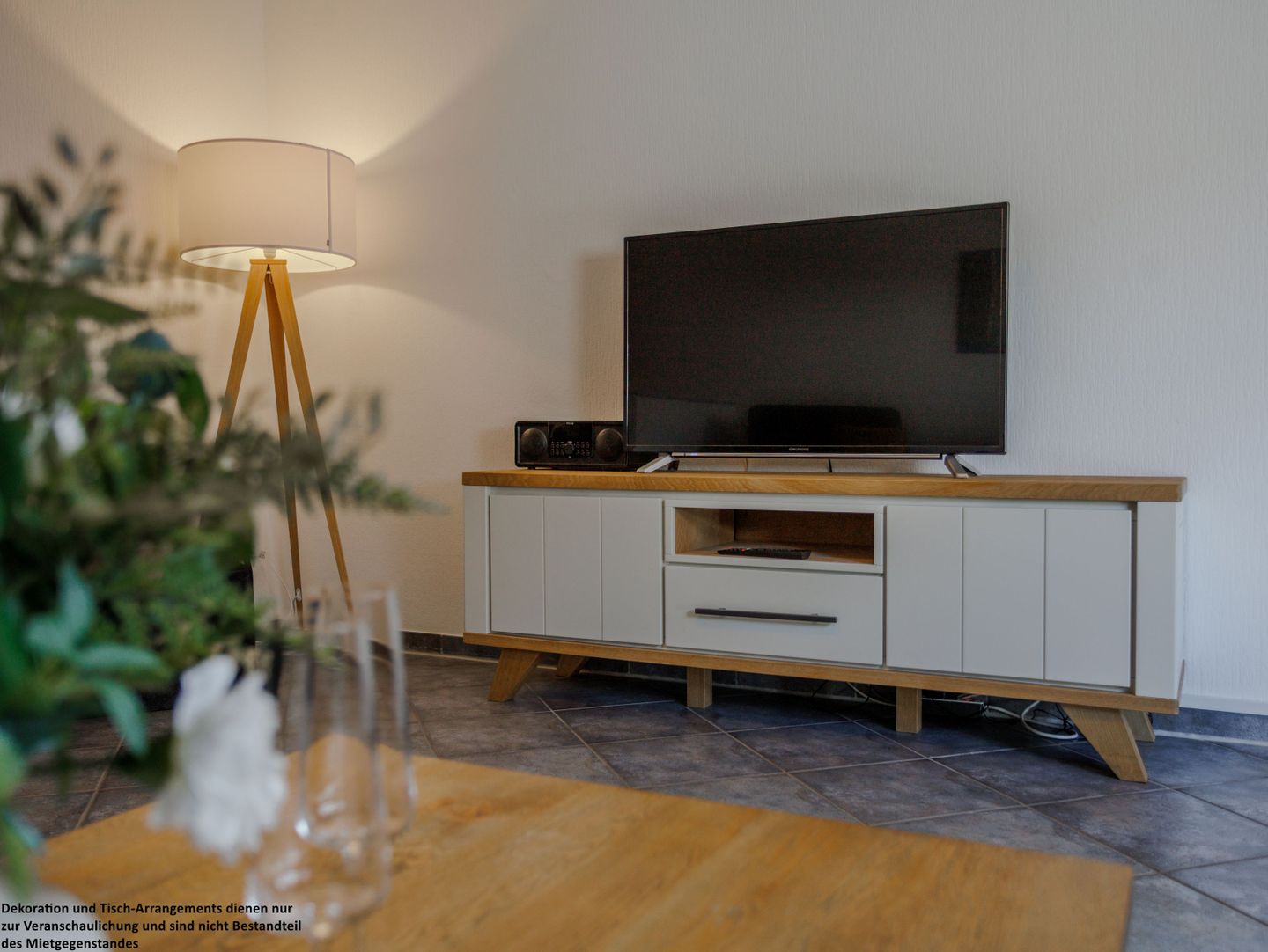 Schon beim Eintreten empfängt Sie der freundliche Eingangsbereich mit einer modernen Kommode und einer Garderobe, die Platz für Ihre Ankunft und Ihre ersten Urlaubsmomente schafft.