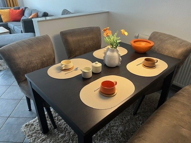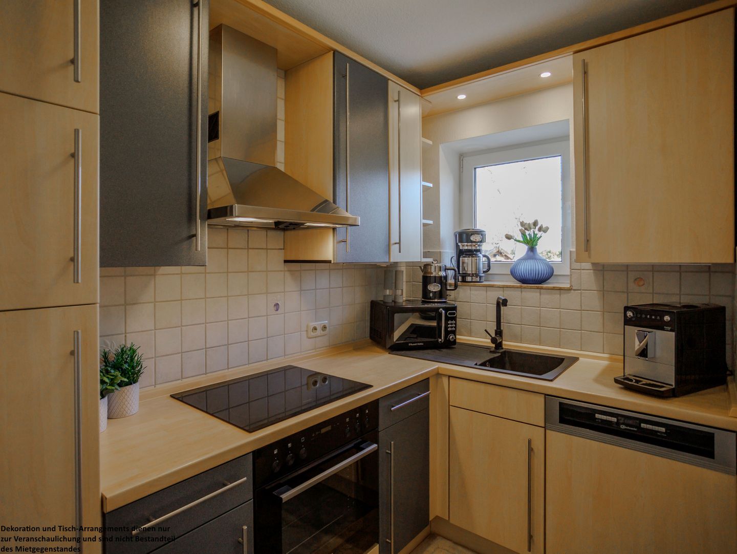 Im Erdgeschoss befindet sich außerdem ein helles, freundlich gestaltetes Gäste-WC sowie eine voll ausgestattete Küche, in der Sie alles finden, was Sie für einen entspannten Selbstversorgerurlaub benötigen.
