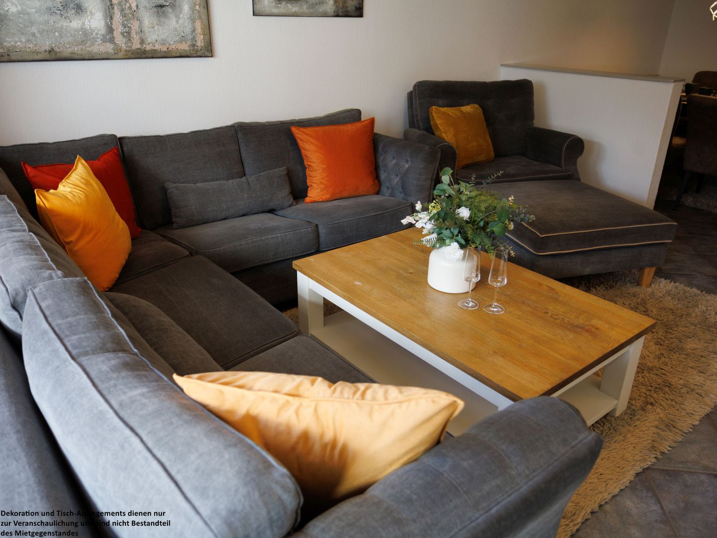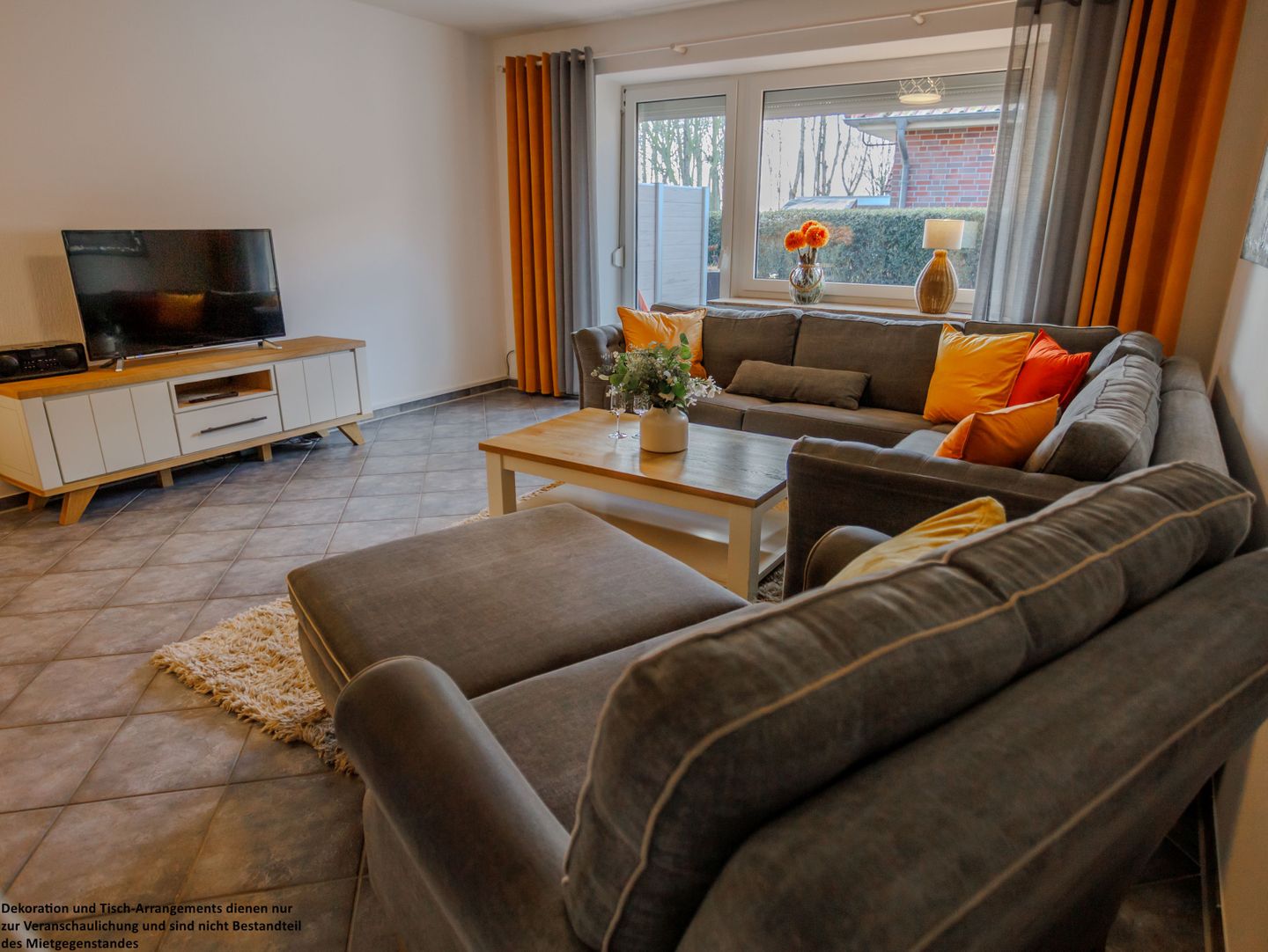 Auf der hochwertigen Sofalandschaft können Sie entspannte Abende verbringen – sei es bei einem guten Film, einem spannenden Buch oder einfach mit Blick in den grünen Garten.