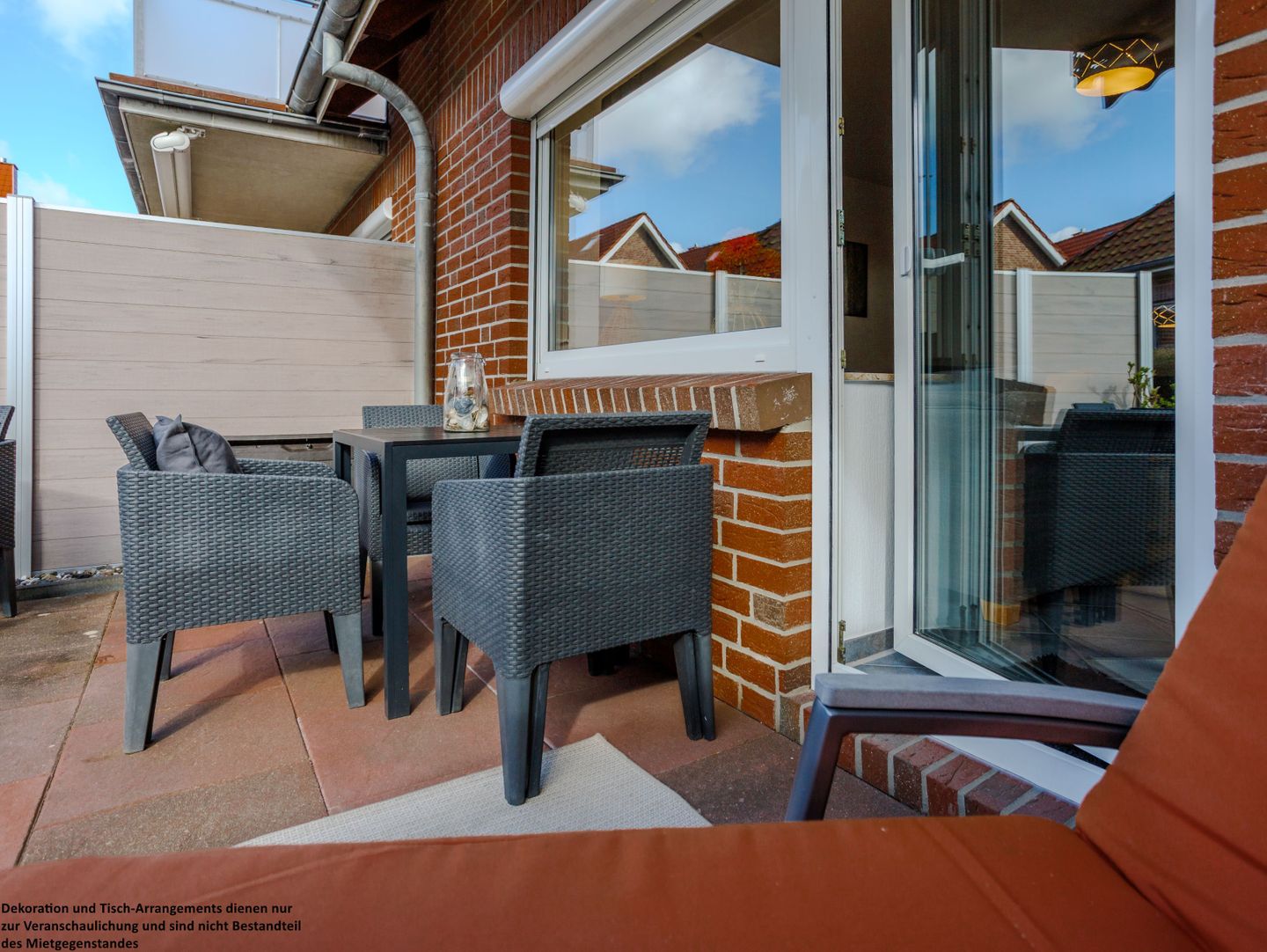 Von hier aus gelangen Sie direkt auf die Terrasse, die mit Garten und Sitzmöglichkeiten der perfekte Ort zum Abschalten, Sonnen und Durchatmen ist.