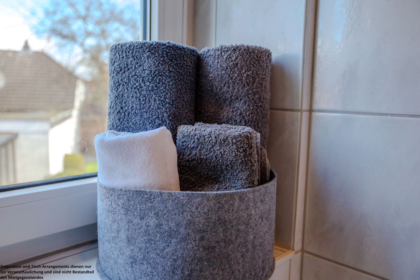 Das Premium Handtuchset enthält je Paket: 1x großes Duschhandtuch, 1x kleines Handtuch sowie außerdem je Ferienunterkunft (unabhängig von der Anzahl der gebuchten Wäschepakete) 1x Duschvorleger (pro Bad), 2x Geschirrhandtücher